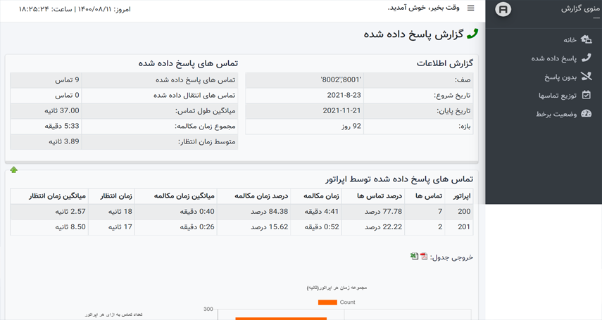 پیاده سازی و ایجاد بستری جهت پاسخ به تماسهای دریافتی به شماره موبایل یا شماره تلفن شرکت